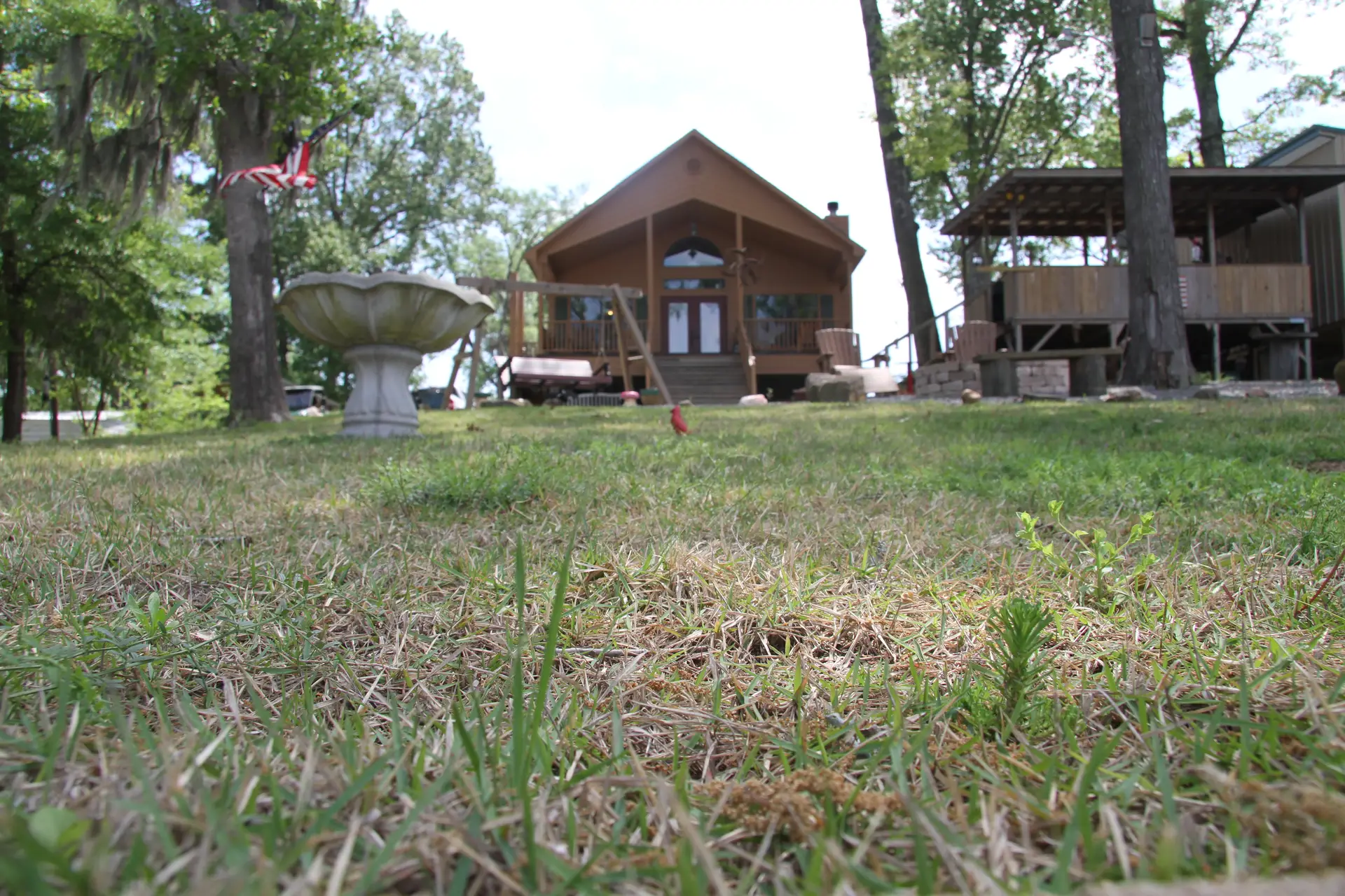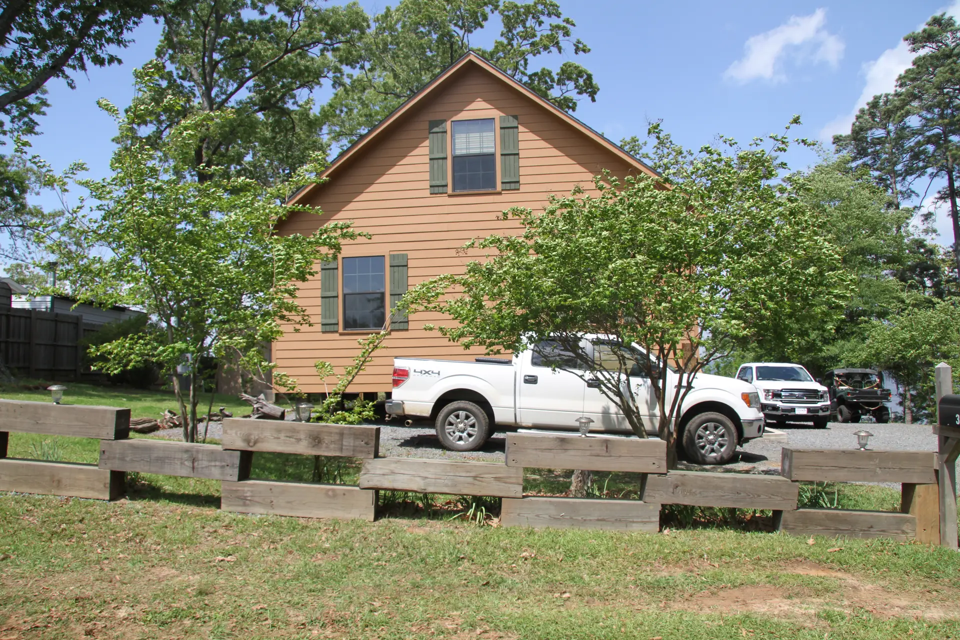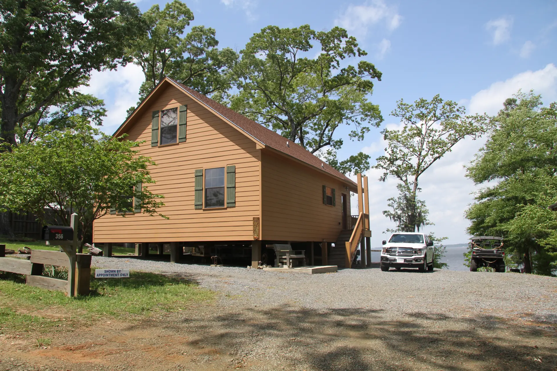 Toledo Bend Cabin looking so pretty up there on the hill.
