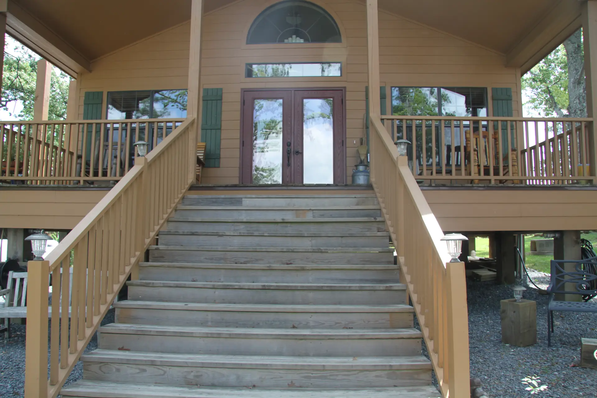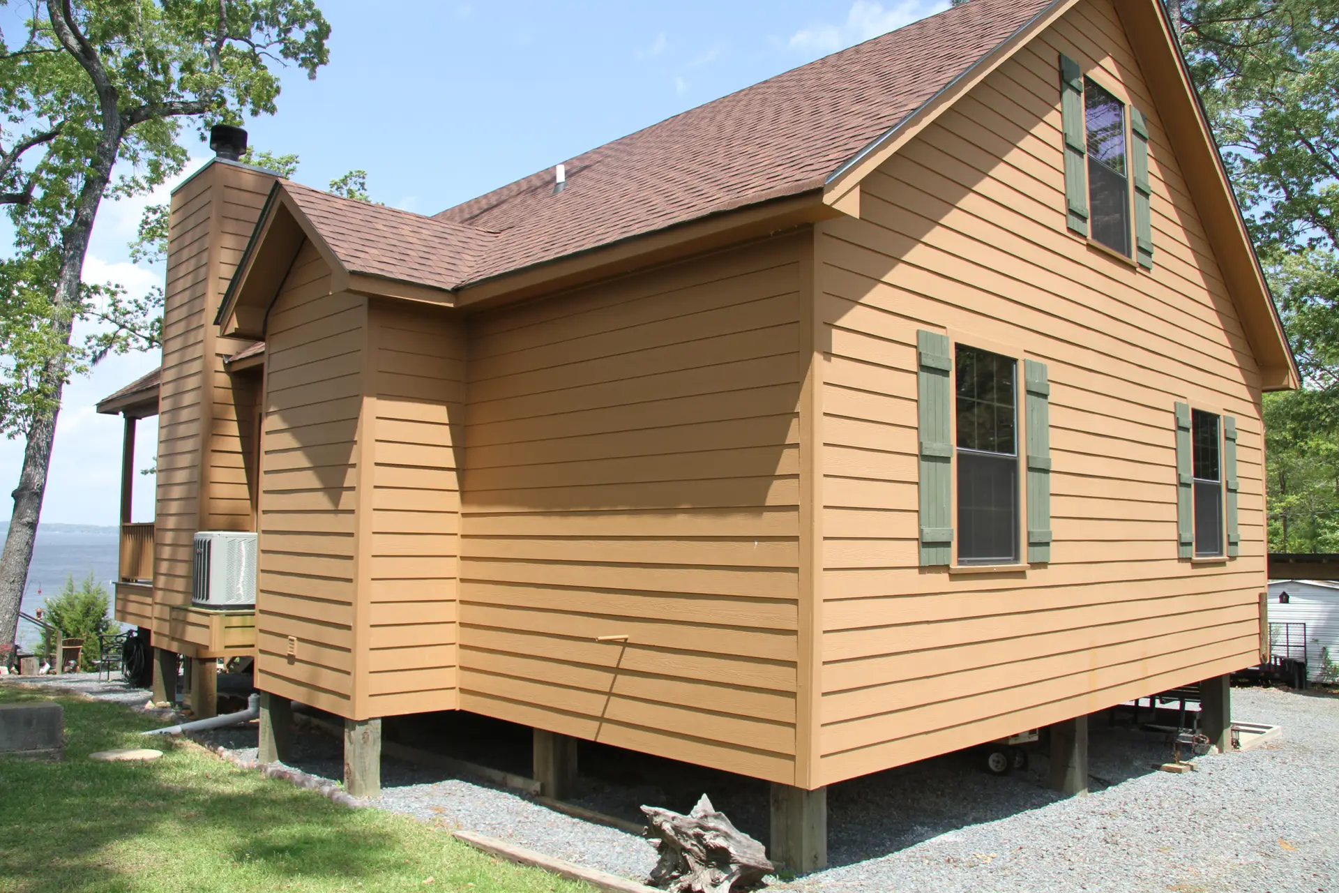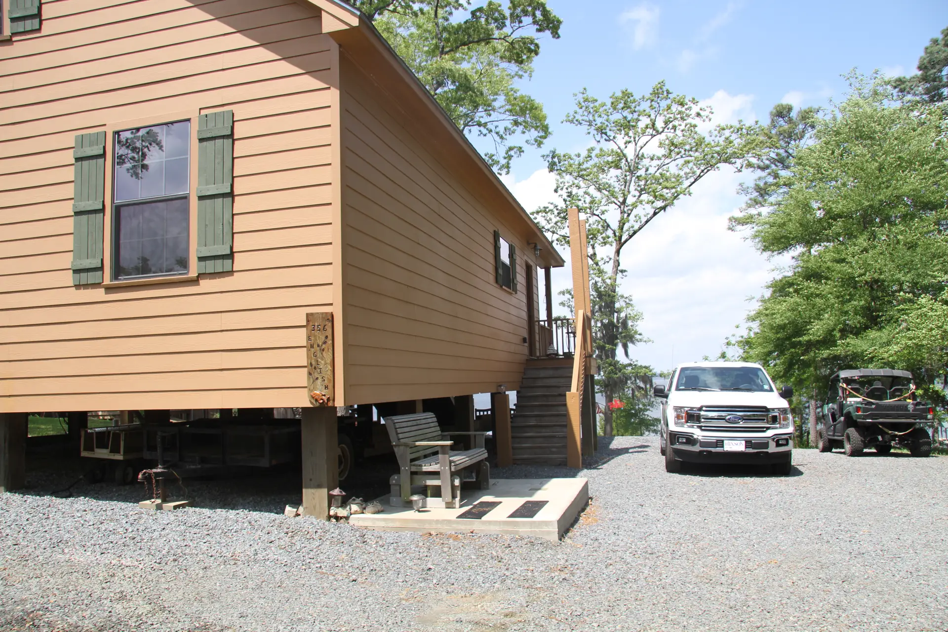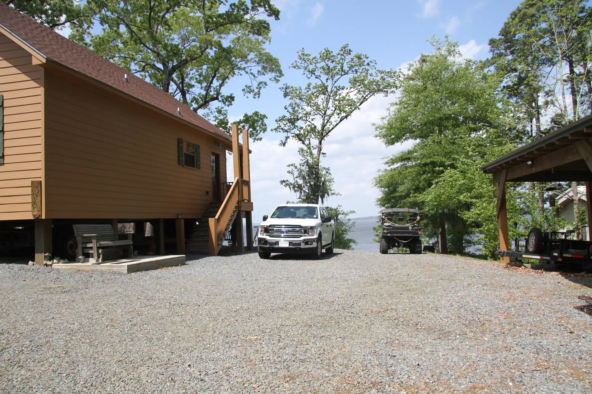 Toledo Bend Cabin looking so pretty up there on the hill.