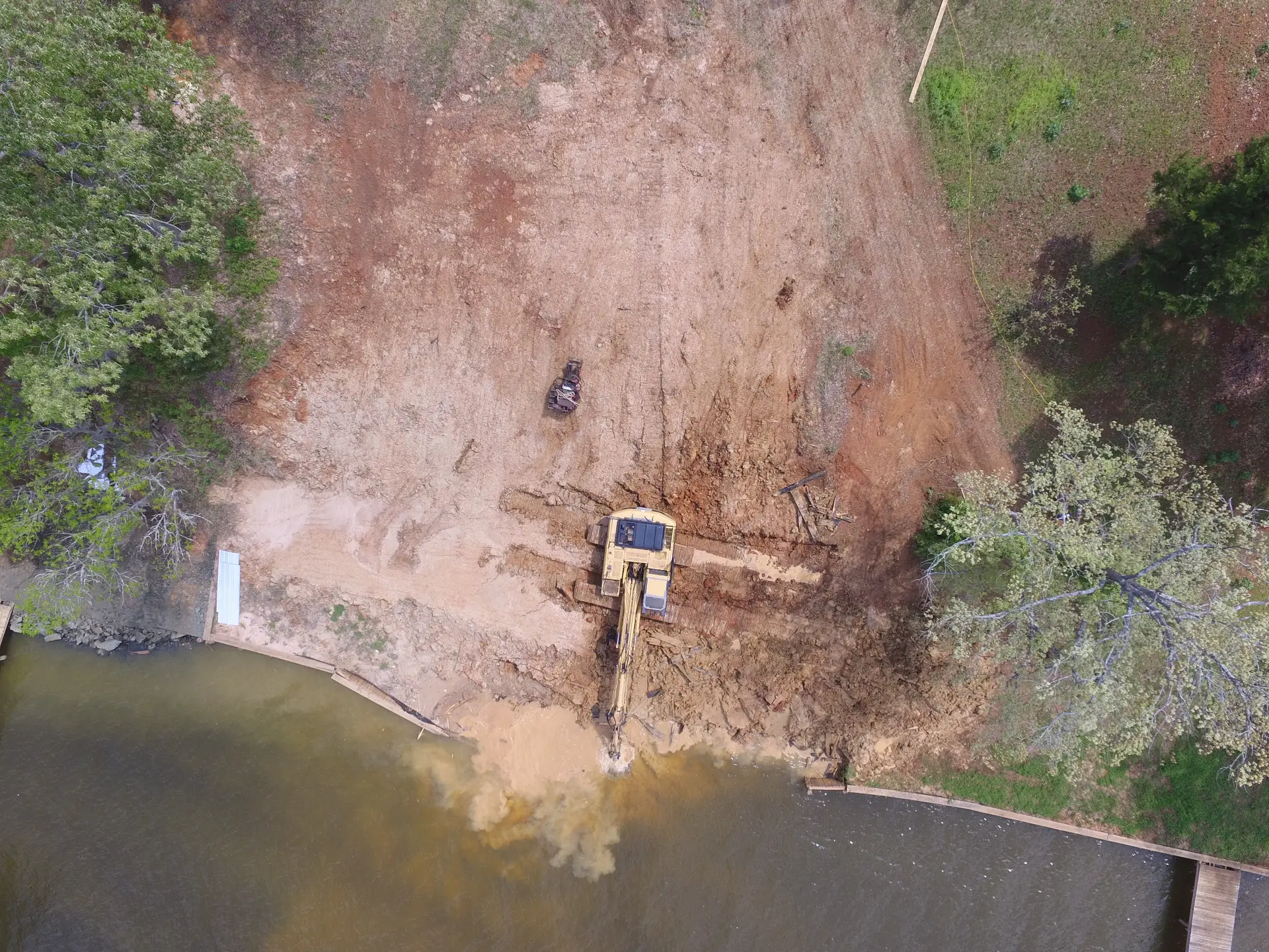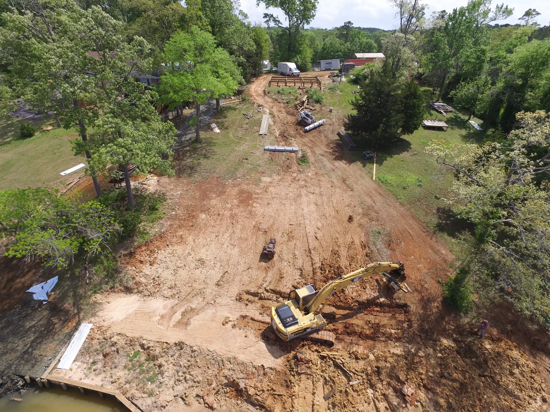 Now that the seawall is complete we have a lot fo dirt work to do up the hill.