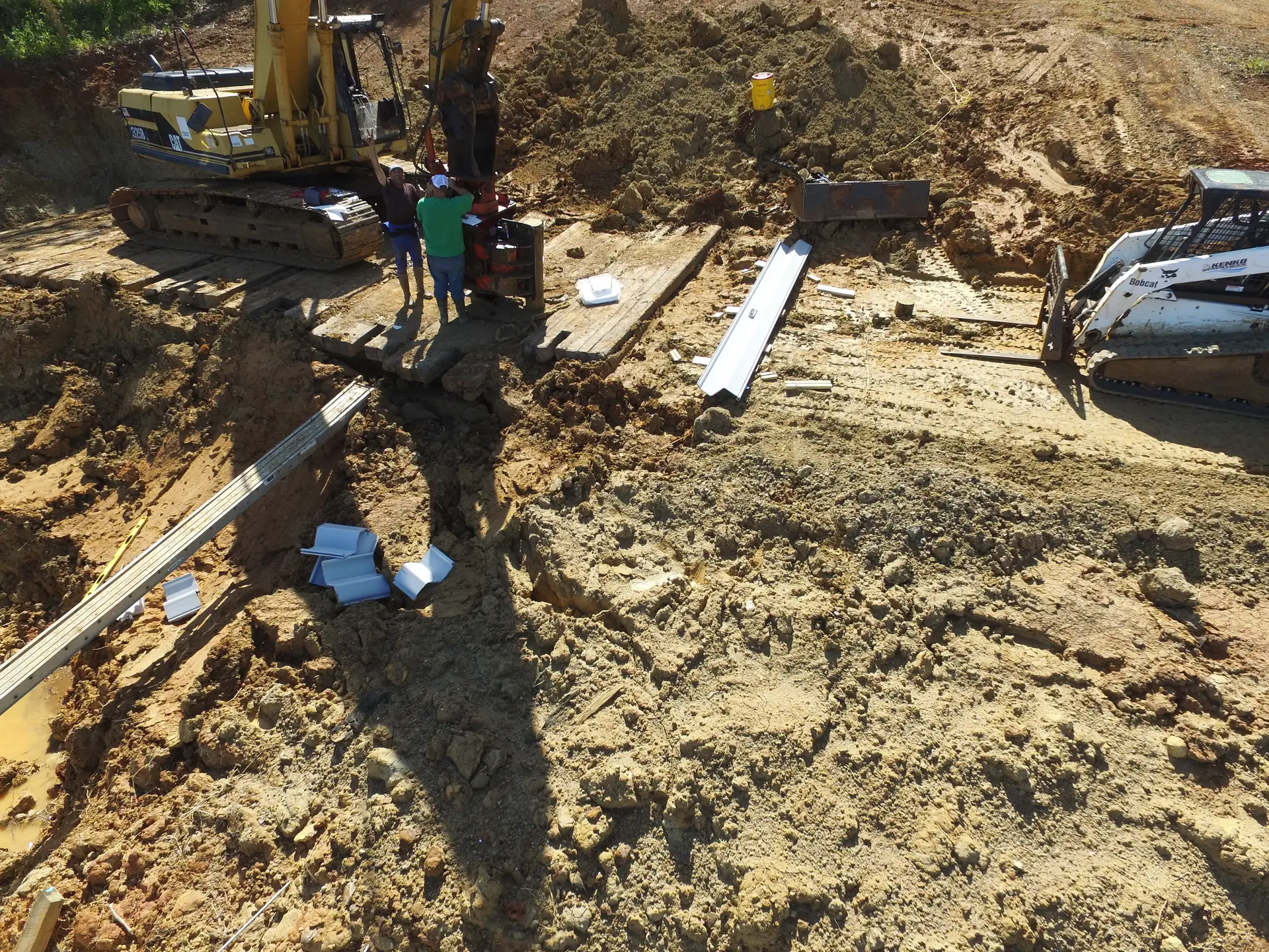 A vinyl sheet ready to be driven by the excavator and vibratory hammer.