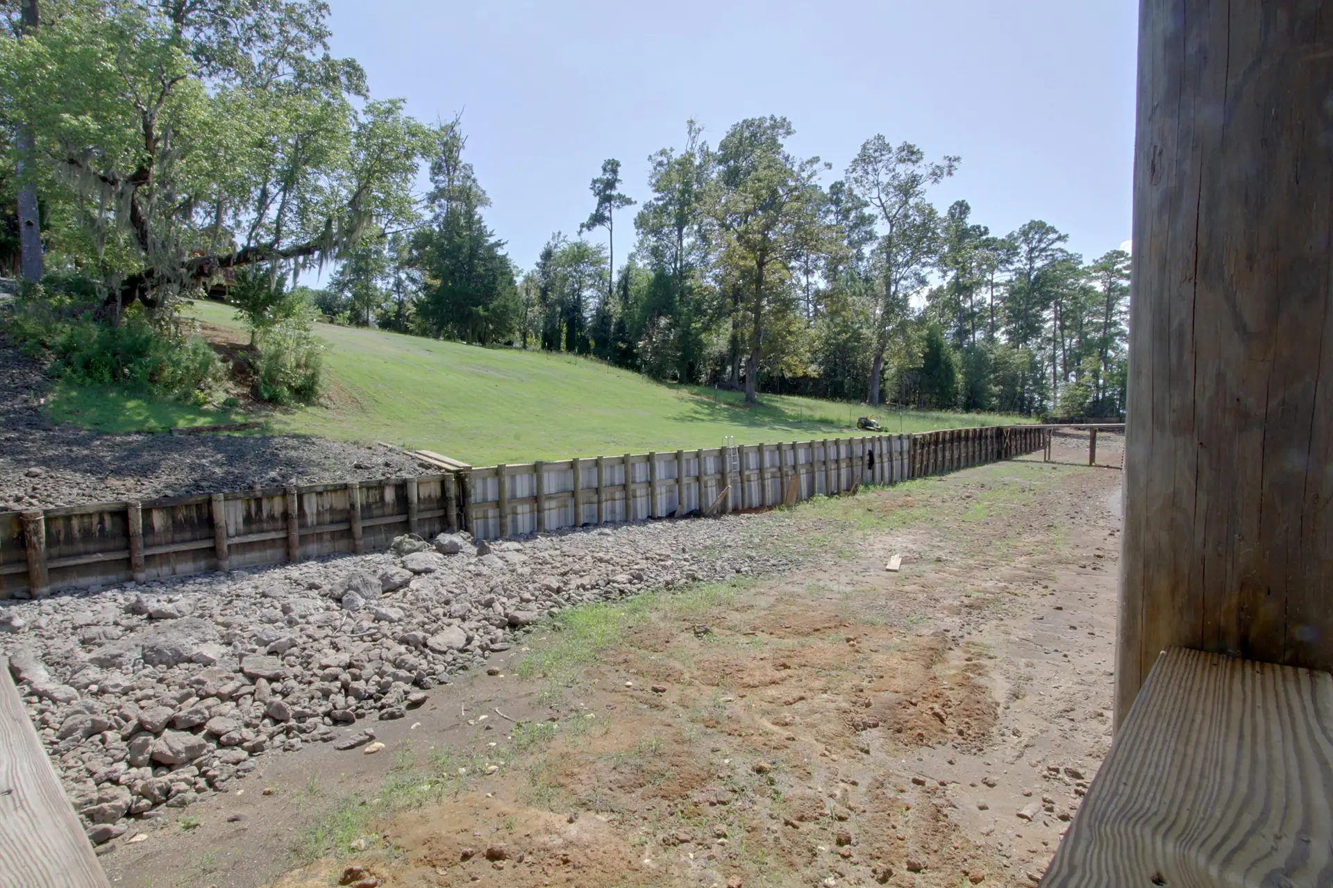 Below are a couple of pictures of my neighbors property on the other side, to the south of me. When the seawall failed initially there was a section of about 5 or 10 feet of the seawall on her property that leaned over. Our seawall is connected becaused she used to own my property also. One could argue that my neighbor should be responsible for 5-10% of the cost of the seawall repair, but I didn’t worry about it. My focus was to save my property from further damage. It was also my focus to make sure not to cause damage to my neighbors’ properties by not fixing my seawall. My contractor met with my neighbor to the south of me and advised her that her seawall could be facing imminent failure, especially because it likely has failed fasterners in it just like mine. She was advised by my contractor to inspect her tension cables and replace the fasteners to hopefully avoid failure on her seawall. She has also been advised that the soil level at her seawall is too low and is likely building up hydrostatic pressure because the water cannot flow over the top.